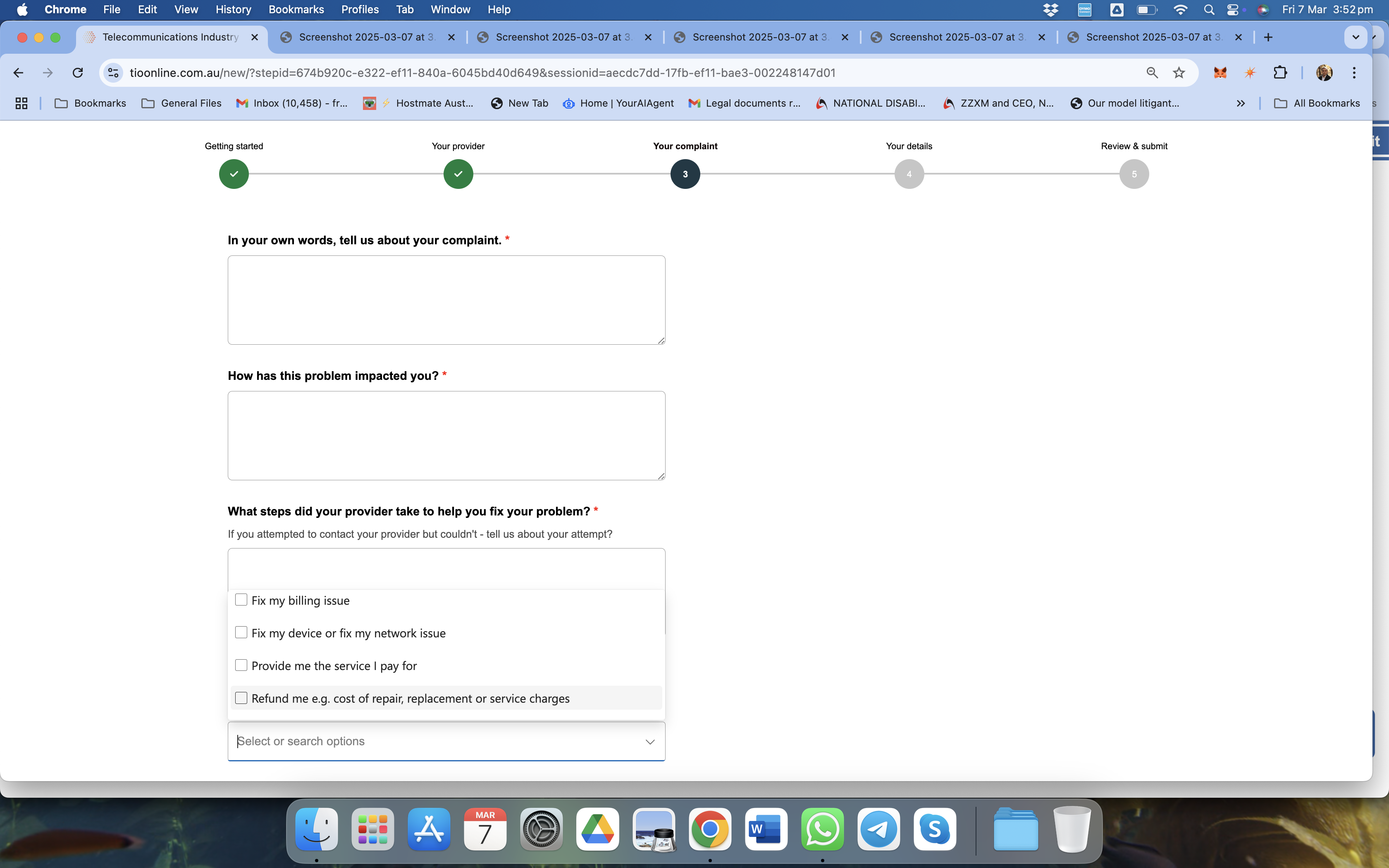 Importantly, where you can, click more than one option but try to place a monetary loss you have suffered that can be directly attributed. We have found that even stating that a loss of $1,000 was suffered, could be resolved quickly with a $600 refund on previous bills.